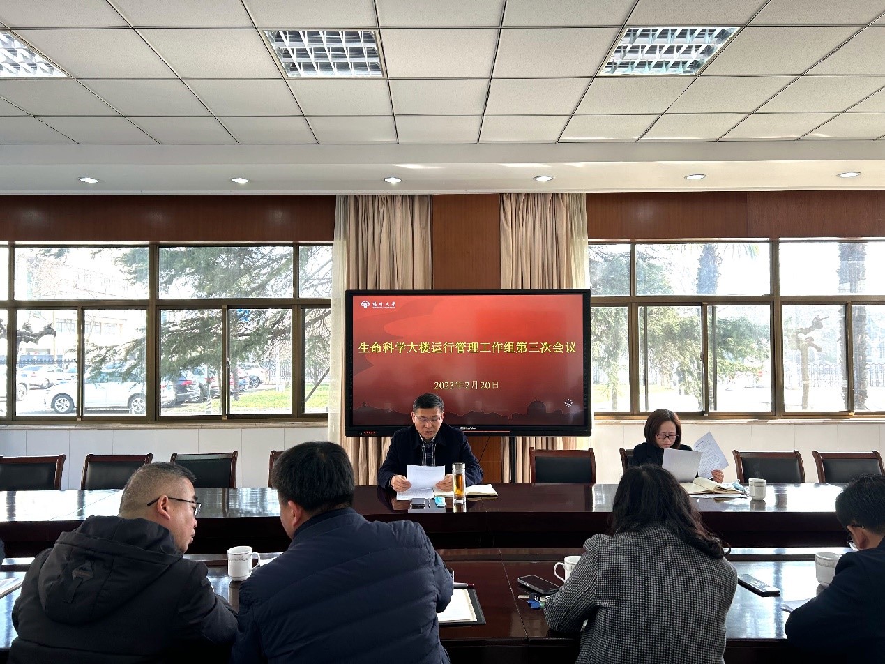 2月20日上午,刘巧泉副校长主持召开生命科学大楼运行管理工作组第三次会议,深入讨论了国有资产管理处牵头起草的生命科学大楼运行管理工作思路及近期重点推进工作安排,并广泛征询与会单位的意见建议。
