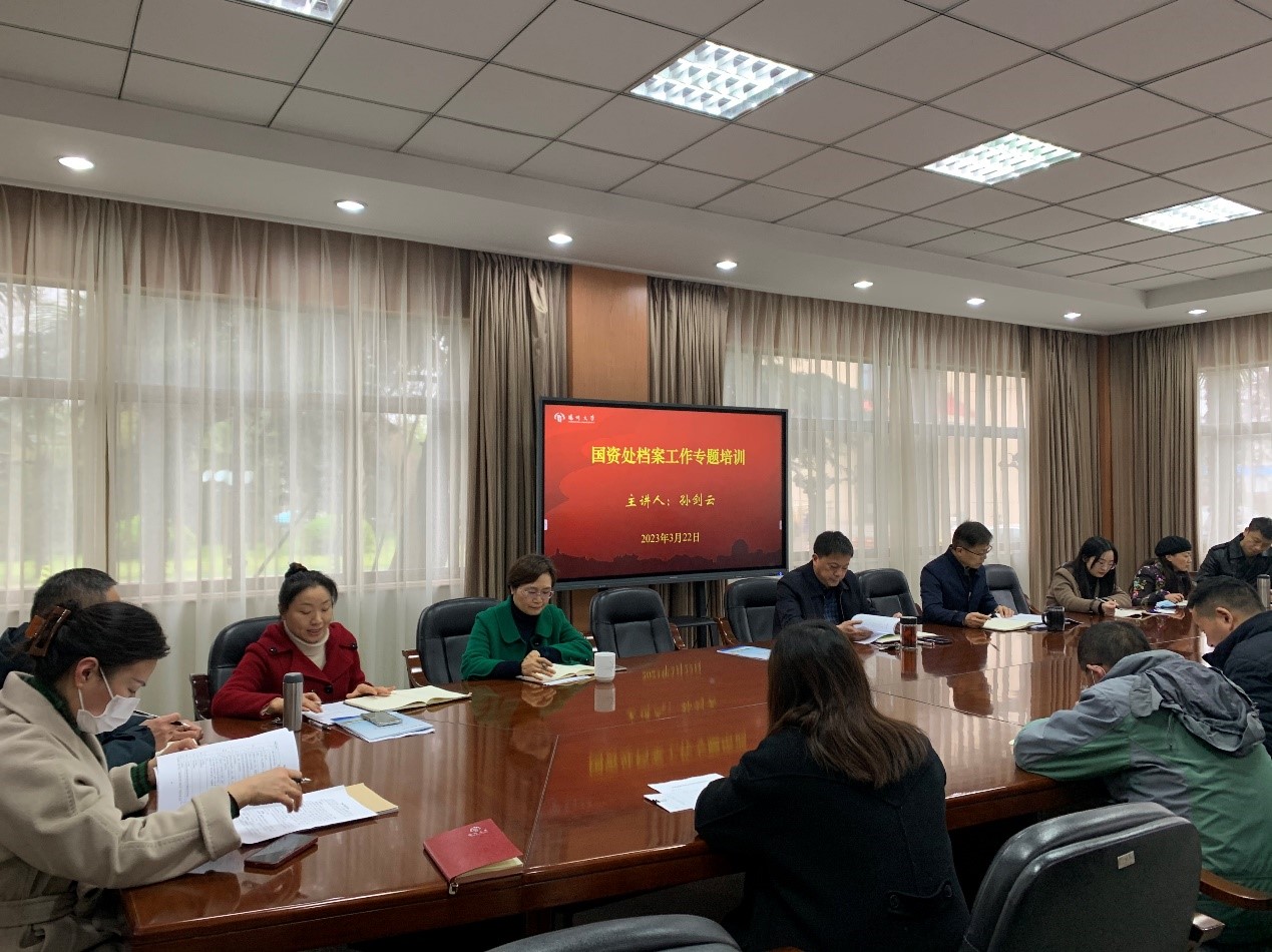 3月22日,国资处组织开展档案管理专题培训会,校档案馆孙剑云副馆长应邀进行培训指导。