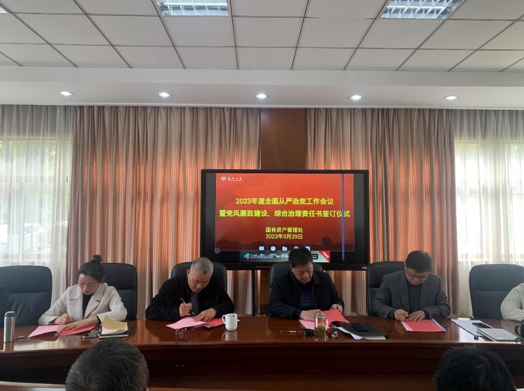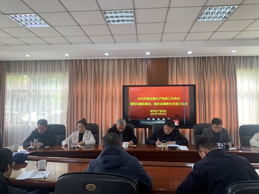 3月29日,国资处召开2023年度全面从严治党工作会议,传达学校2023年度全面从严治党工作会议和校园安全综合治理工作会议精神,签订部门党风廉政建设责任书和综合治理责任书。