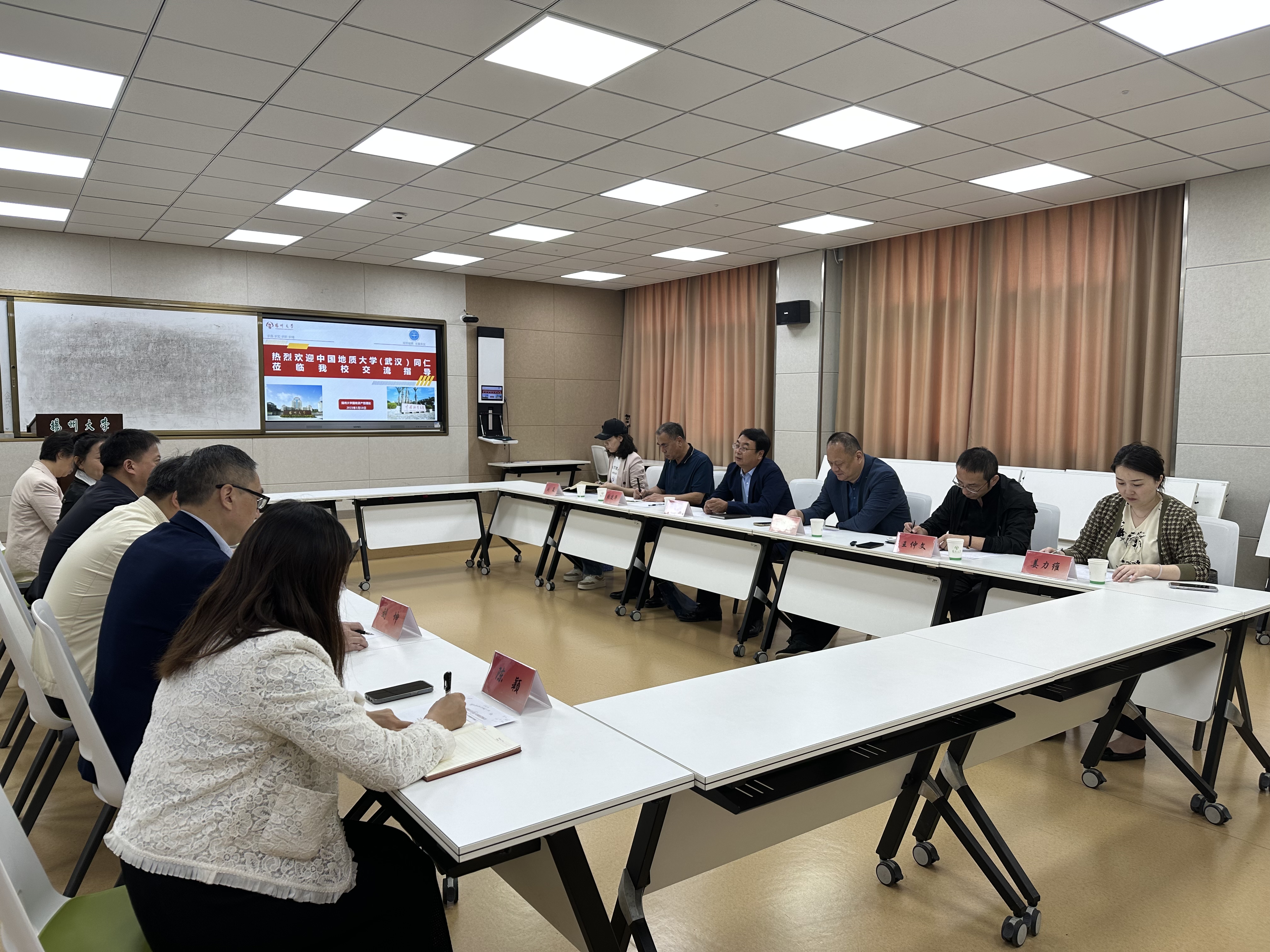 王文起介绍了中国地质大学(武汉)的事业发展现状、校区运转及房产管理的体制机制,共同探讨了高校国有资产管理面临的新形势和新挑战。王文起对我校国有资产管理工作给予高度评价,认为我校国有资产工作扎实有效,值得学习借鉴,希望进一步深化交流合作。