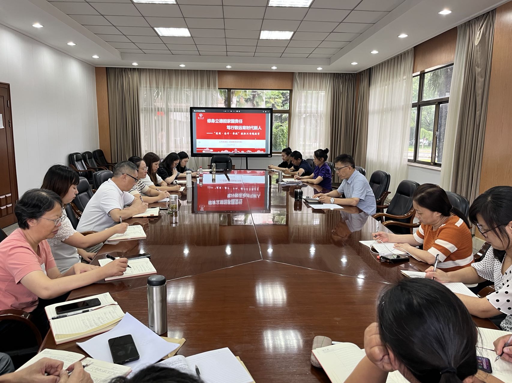 9月20日下午,国资处在校行政楼101会议室召开全体教职工政治学习会,开展教职工“开学第一课”专题教育活动、传达《扬州大学规范管理人员权力行使的十项规定》(扬大委〔2023〕68号)文件精神。学习会由殷泽勇副处长主持。