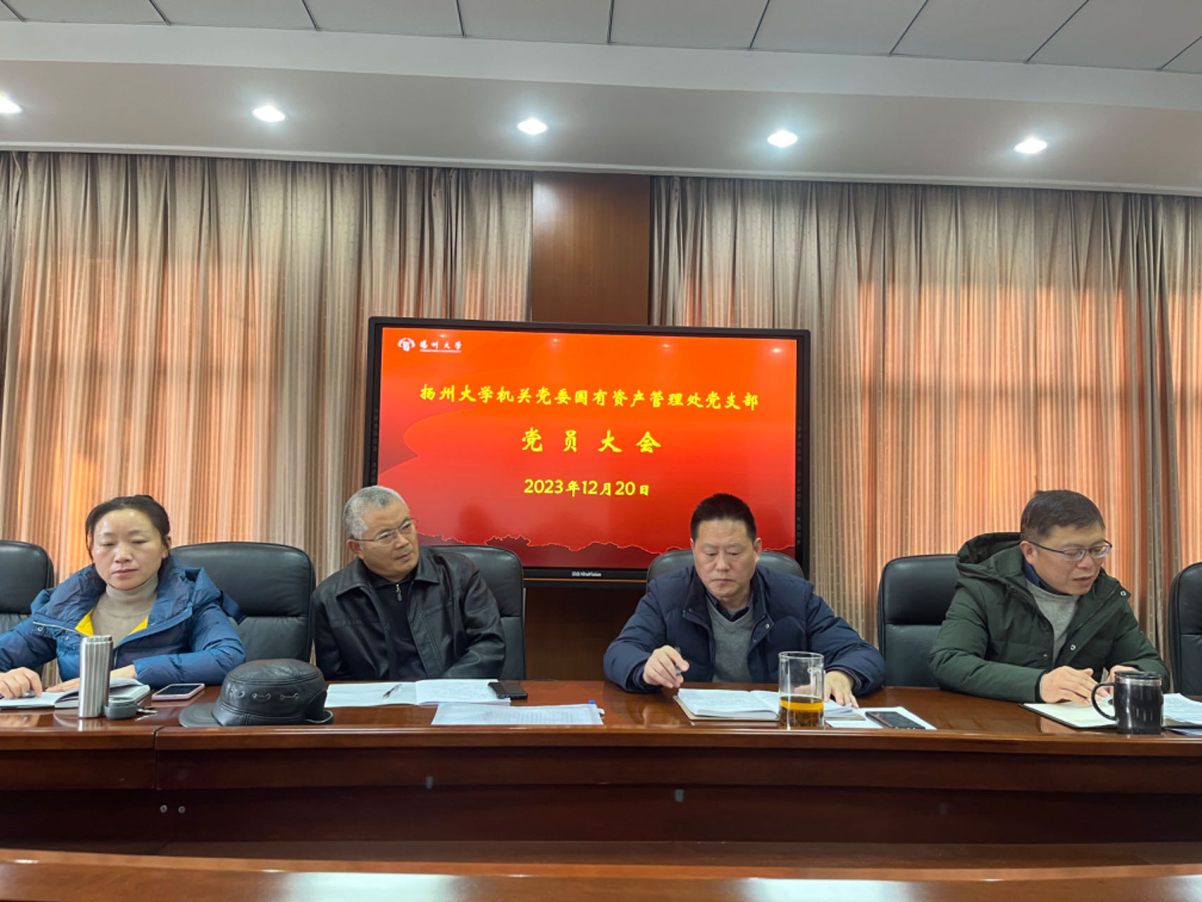 2023年12月20日,国资处党支部召开支部党员大会,会议由支部副书记殷泽勇主持,全体党员参加活动。